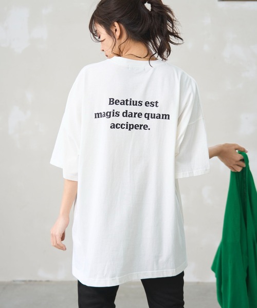 シンプルで使いやすいシンプルなモノトーンのオーバーTです。バックプリントはラテン語で「服が人を飾るのではなく、人服を飾る」という意味がでデザインされています。 何ともクスっとしてしまうメッセージ性。 サイドスリット入りで、普段の着こなしにアクセントが付けられます!