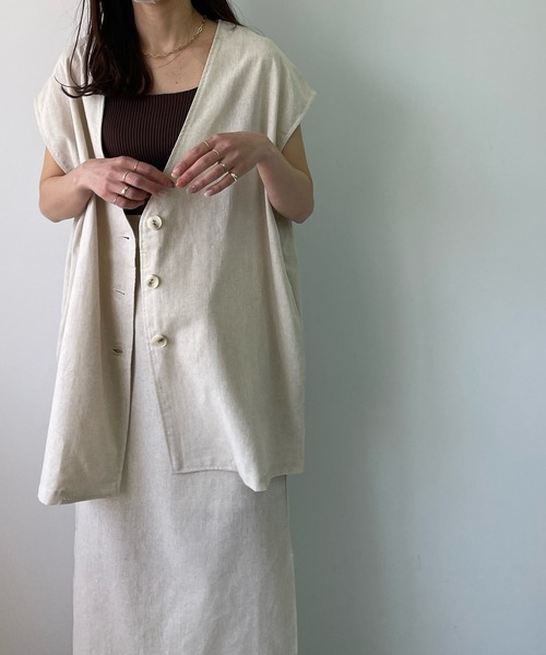 《リネンノーカラージレ》 リネン混素材オーバーサイズのノーカラージレ。 オーバーサイズなのでコンパクトなボトムとの相性◎ ヒップにかかる丈感で程よくルーズなシルエットが大人カジュアルな雰囲気を演出します。 サッと羽織るだけできまるので、インナーを選ばず、着まわしのきく1枚です。 同素材のスカートと合わせてセットアップスタイルも オススメです。 着用モデル 156cm/160cm /162cm ※ご覧頂くモニター・環境等により実際の商品と多少色味が異なって表示される場合がございます。 予めご了承をお願いいたします。 【お買いものをよりお楽しみいただく為に!】 ▼商品のお気に入り登録(ハートマークをクリック) 完売カラーの再入荷通知や、ラスト1点の通知、セールの通知も受けることができます。 ▼ブランドのお気に入り登録 新商品や再入荷など、いち早くブランドのお得な情報を受け取ることができます!