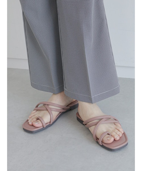 サムリングデザインがトレンドライクなサンダル。 アッパー部分は、クロスデザインの華奢なベルトでホールド感も抜群◎フラットなので歩きやすく、疲れにくいのも魅力です。 シンプルなので、コーデに取り入れやすくシーズンムードも盛り上げてくれる優れもの。 ※商品画像は、撮影環境やお客様のご利用のPC・スマートフォンのモニター環境などにより実物と色味に差異がある場合がございます。 ★《お気に入り登録》でお得な情報をGET★ ① 商品ページ内のハートマークをクリック! ② 以下通知が受け取れます! 「再入荷」「ラスト1点」「特別セール」etc.. \ブランド、ショップのお気に入りも是非!/ ※他のキャンペーンにより、期間中に価格が変動する場合があります。 ※セールは予告なく終了させていただく場合もあります。