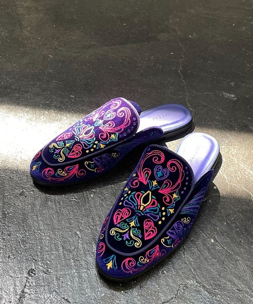 シックなベロア素材にカラフルな配色の刺繍が映えるスリッパ どこかヴィンテージも感じられる柄にカラフルな刺繍を施しました! モードな雰囲気のスタイリングに相性抜群のアイテム◎ スリッパ型なので、サッと履ける嬉しいポイント! インソールはクッション性があり履き心地抜群◎ カラフルな刺繍が足元を華やかに演出します! 〈注意事項〉 ・サンプルにて撮影をしておりますので、実際の商品とは素材や仕様・加工・サイズ等が若干異なる場合がございます。 ・モニター・環境等により実際の商品と色味が多少異なって表示される場合がございます。予めご了承をお願いいたします。 ・撮影環境により、光の当たり具合で色味が違って見える場合があります。あらかじめご了承下さい。 ▼気になるアイテムは《お気に入り登録》がおすすめです! 完売カラーの再入荷情報、セール情報、ラスト1点の通知を受け取ることができます! ▼《ブランドのお気に入り登録》で新商品や再入荷などのお得な情報をいち早くお知らせします。