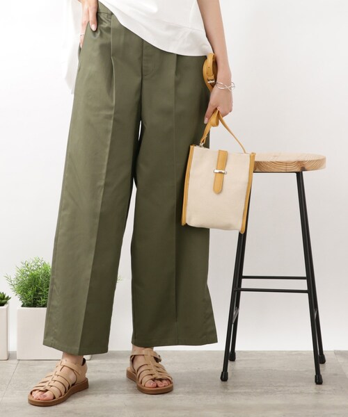 【デザイン】センタープレスの入ったすっきりとした印象のワイドパンツです。裾に入ったサイドスリットがポイントになっています。女性らしいスマートなパンプススタイルがおすすめです。※ポケット数:横×2【生地感】さらっとした肌触りが着心地良いコットン(綿)混素材です。※裏地なし※スタジオ画像とロケ画像はそれぞれ、照明や太陽光の関係により実際よりも色味が違って見える場合があります。(実際のお色味に近いのはスタジオで撮影した画像です)またパソコン・スマートフォンなどの環境により、若干製品と画像のカラーが異なる場合もございます。予めご了承ください。モデル情報:身長168cm B78 W58 H84 着用サイズ:02(M)店舗へのお問い合わせ商品番号:741-64033●製品寸法:02(M):W62~72cm H86cm 股下65cm 前股上34cm 渡り幅33cm 裾幅25cm03(L):W66~76cm H90cm 股下66cm 前股上35cm 渡り幅34cm 裾幅26cm04(LL):W70~80cm H94cm 股下67cm 前股上35cm 渡り幅35cm 裾幅27cm備考: