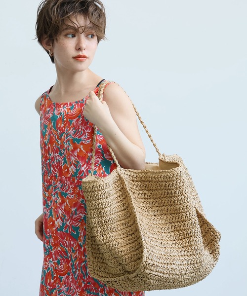夏らしい素材感のトートバッグ肩がけができる紐の長さで実用性も◎口が巾着になっていて中を見せないデザイン伸縮性:なし透け感:なし裏地:ありポケット:あり生地感:柔らかいペーパー素材注意点:重さを掛けすぎますと持ち手が切れやすくなっておりますのでご注意ください。宅配袋での発送のため配送時に型崩れする場合あり上記理由での返品交換不可モデル:154cm▼モデル着用写真は撮影環境により、多少実際のカラーと異なる場合がございます。▼タンブラー乾燥はお避け下さい。▼色落ちの恐れがありますので、他のものと分けて洗って下さい。▼当商品は機械による生産の過程上、『生地を織る際の糸の継ぎ目』や多少の『ほつれ』、繊維の『混紡 』、形やサイズに多少の『誤差』が生じる場合がございます。