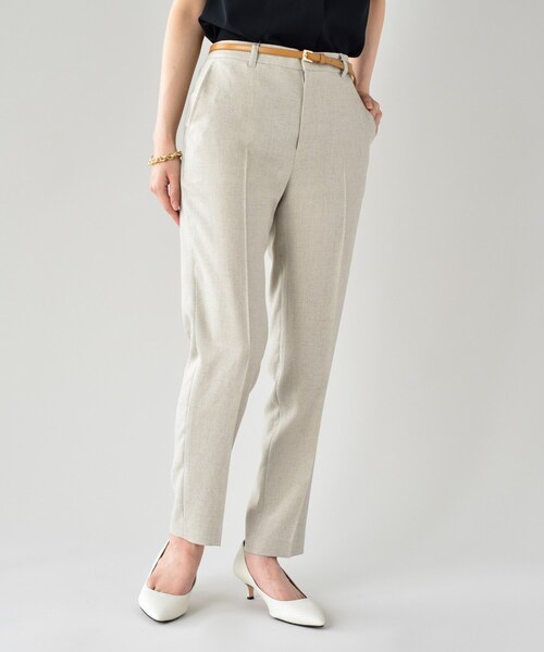夏に嬉しい、清涼感あるセットアップシリーズです。 【デザイン】 リネン見えする機能素材を使ったパンツ。 足のラインがきれいに見えるよう腰周りに適度なゆとりを持たせたテーパードシルエットにしています。 \こちらもおすすめ!/ 同素材のジャケットとセットアップで着用頂けます。 ※テーラードジャケット(商品番号:153-44620) ※半袖ノーカラージャケット(商品番号:153-44621) 同素材でスカートもお作りしています。 ※スカート(商品番号:153-74620) ※ポケット数:横×2 後ろ×1 ※裏地なし 【生地感】 イージーケアできるリネン調のストレッチ素材。 リネンのような涼しげな表面感でありながら、シワになりにくくイージーケアできるのがPOINT! トリアセテートの良質感と清涼感が特徴です。 適度なストレッチ性によるストレスフリーな着心地を演出しています。 抑えめなツヤ感とマット組織により幅広いシーンで活躍してくれる素材になっています。 【着こなしポイント】 テーパードパンツは裾の位置をきちんと決めることが全体のコーディネイトバランスを作る上で大事です。 着用されるコーディネイトで頻度高く合わせるシューズに合わせ、長すぎないようスッキリした雰囲気が見た目の良さに繋がります。 ********************** 【スタッフ着用コメント】 生地感:さらっとしたドライな手触りです。 着用感(身長163cm Mサイズ):リネン調の素材感で、見た目が涼しげ&お手入れがとてもラク! 軽めの生地感なので風通しも良く、気持ちの良い着心地です。 ウエスト周りはタックなしですっきり見え。 若干のストレッチ性があるおかげで、動きやすくアクティブな日にぴったりです。 ********************** ■気になるアイテムは『お気に入り登録』がおすすめです!■ オンラインサイトの各アイテムにある「 マーク」をクリックして簡単に追加できます! お気に入り登録して頂いたアイテムは・・・ 再入荷通知や、値下げ情報・在 モデル情報:身長163cm B80 W59 H82 着用サイズ:02(M) 店舗へのお問い合わせ商品番号:153-64620 ●製品寸法: 00(SS):W66cm H88cm 股下62cm 渡り幅28cm 裾幅14cm 01(S):W69cm H91cm 股下66cm 渡り幅29cm 裾幅15cm 02(M):W73cm H95cm 股下67cm 渡り幅30cm 裾幅16cm 03(L):W76cm H98cm 股下67cm 渡り幅31cm 裾幅17cm 04(LL/トール):W79cm H101cm 股下68cm 渡り幅32cm 裾幅17cm 42(3L):W83cm H105cm 股下67cm 渡り幅34cm 裾幅19cm 44(4L):W87cm H109cm 股下67cm 渡り幅35cm 裾幅19cm 46(5L):W91cm H113cm 股下67cm 渡り幅36cm 裾幅20cm 48(6L):W95cm H117cm 股下67cm 渡り幅38cm 裾幅20cm 50(7L):W99cm H121cm 股下67cm 渡り幅39cm 裾幅21cm 備考:
