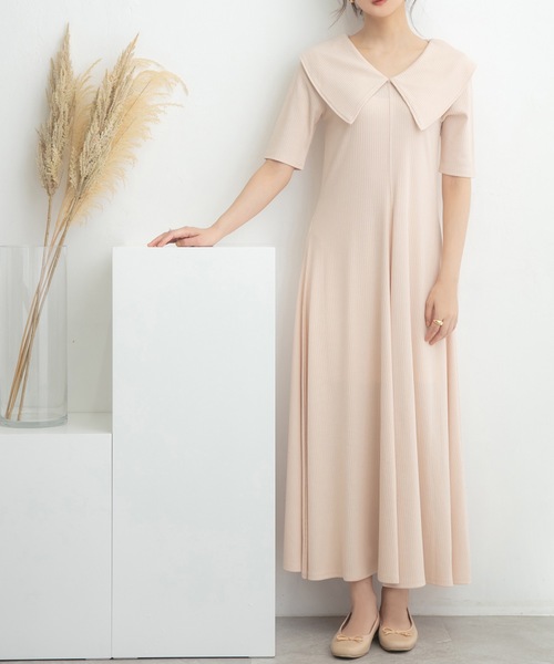 ビッグカラーデザインが大人可愛いロングワンピが登場。襟ぐりの開き具合やシルエットなど細部までこだわりが詰まった1枚。夏から初秋にかけて重宝する事間違い無しのアイテムです。定番のアイボリー、気分の上がるオレンジ、晩夏に恋しくなるブラウンの3色をご用意致しました。カラーによっても雰囲気が変わるのも魅力のアイテムです。