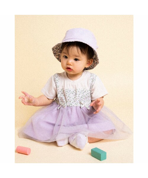重ね着風の女の子用ロンパース。 バストラインの切り替えからふんわりと広がるシルエットがとっても可愛い◎ チュールや小花柄、リボンを取り入れて華やかに仕上げました。 ロンパースっぽさを極力なくしワンピース風にデザインされているので、春のお出かけ着にピッタリのアイテムです。 お姉ちゃんサイズ「1801-42556」とシミラーコーデを楽しめます。