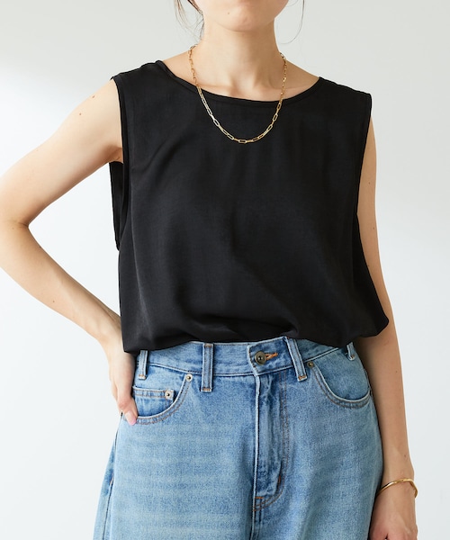 ★人と差が付く夏のタンクスタイル!●品をプラスしてくれるサテン生地が滑らかで着心地抜群。●バッグに施したネームタグがポイントになり、高級感をプラス。●1枚で着てもジャケットにインしても相性が良く、シーズンレスに使えるのも魅力。●デニム合わせやラフなスタイルも、程よくクールに大人っぽく仕上げてくれます◎【COORDINATE】ブラックビッグシルエットデニムジャージワイドパンツパープルマーメイドスカートセットアップベージュジャージワイドパンツチェーンブレス・透け感:なし・裏地:なし・伸縮性:なし・光沢感:あり※撮影場所やお使いのモニター環境により若干お色味が異なる場合がございます。特にロケの撮影では明るく見える傾向にございます。詳細撮影画像で色味をお確かめくださいます様お願いいたします。※サンプルで撮影をしております。若干の仕様が変更になる場合がございますので予めご了承の上ご注文くださいますようお願いいたします。※サンプルでの採寸のためあくまで目安となります。予めご了承ください。♦気になるアイテムは「お気に入り」登録がおすすめです♦♡マークをクリックし、お好きなカラーを選んでお気に入り登録をすると 残り1点のお知らせ、再入荷のお知らせ、SALE情報などを受け取ることができます。ワンマイル お仕事 きれいめ オフィス 着回し トレンド カジュアル リゾート 夏 旅行 fashion apparel ★ ☆ ノースリ タンク