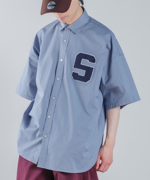 ゆったりとしたサイジングと胸元のワッペンが印象的なレギュラーカラーシャツをご紹介。●肌触りの良いコットン100%のブロード生地を採用●ドロップショルダー、ゆったりとしたシルエットのオーバーサイズ●胸元には印象的な大きめのロゴワッペンを刺しゅう●ホワイト、サックス、グリーンのカラー展開シンプルなデザインと使いやすいカラー展開でストリート、きれいめカジュアル、古着MIXとどんなシーン、ファッションにも合わせやすいビッグシャツです。チノパンやデニムパンツはもちろん、夏らしくショートパンツと合わせるものオススメ。メンズ、レディースともに着ていただける可愛らしいロゴワッペンがポイントです。