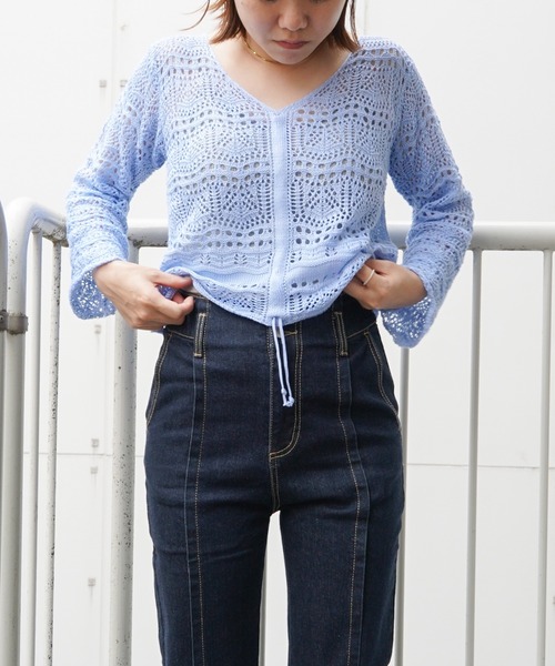 【2022 spring/summer NEW ARRIVAL】【ポイント】レイヤードが楽しくなるトレンドのクロシェ編み!レースのような繊細な模様のクロシェ編みプルオーバー。今年トレンドのアイテムで、取り入れるだけでグッと旬なイメージになります。【デザイン】フロントをきゅっとしぼれるシャーリング仕様。フロントの絞っていただくとウエスト回りのシルエットをすっきり見せてくれます。ホワイト・ブラックの定番カラーに、グリーン・ブルー・ピンクと明るいカラーも揃えたバリエーションです。【おすすめコーディネート】Tシャツやタンクトップとレイヤードして、今年らしい重ね着を楽しむのがおすすめ!透かし編みなので、あたたかい日も着用していただけます。インナーとのレイヤーコーデも楽しめるので、いろんなスタイリングで楽しんでいただけます。[クリーニング]手洗い可、ドライクリーニング可(F)、ウェットクリーニング(W)★Instagramにて近日発売予定のアイテムやルックをご紹介しております。@vence_sharestyle★《お気に入り登録》でお得な情報がいっぱい★・「商品のお気に入り登録」で再入荷通知や、ラスト1点の通知、セール通知も受け取ることができます。・「ブランドのお気に入り登録」で新商品や再入荷など、お得な情報を受け取ることができます!※ご覧のモニター環境により、画像の色味と多少異なる場合がございます。※他のキャンペーンにより、期間中に価格が変動する場合があります。※セールは予告なく終了させていただく場合もあります。