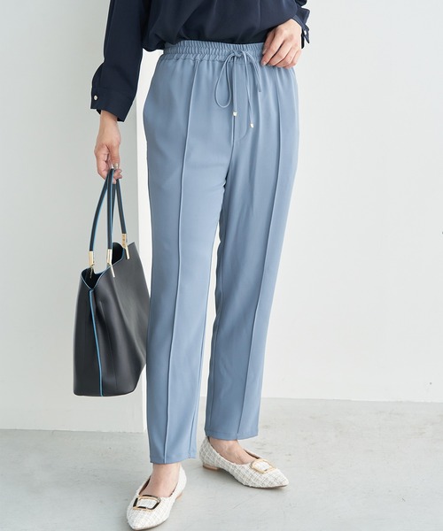 大人っぽく着こなしたいカラージョグパンツ。快適さもしっかりキープ。【素材感】・おち感のある合繊素材のジョグパンツ。・しなやかな風合いの素材を使用しているのでオフィス用にも◎【デザイン・シルエット】・フロントのピンタックデザインが、縦のラインを強調。・ストレスフリーなギャザーウエストは、ドロスト仕様で調節が可能。・脚のラインを拾いにくいストレートライン。【カラー】・チャコール、ベージュ、ブルー、ピンクの4色展開。【スタイリングポイント】・抜け感のあるリラクシーなシャツに合わせて、大人のオフスタイルに。・カットソーもゆとりのあるものを選ぶと◎。-----------------------------裏地:なし透け感:なし伸縮性:ややあり生地感・厚さ:普通ウエスト:ゴムポケット:前 2個/後ろ 2個季節:春~秋-----------------------------※撮影時の光、お使いのモニター環境によって色の見え方が違う場合がございます。※前回好評だったステファニージョガーパンツ(品番:GDS12100)とデザイン、仕様の変更はございません。チャコール(06)ベージュ系(28)ピンク(63)は継続カラー、ブルー(44)は新色になります。※ブルー(44)ピンク(63)モデル身長:165cm 着用サイズ:38/160cm 着用サイズ:38※その他カラー:モデル身長:165cm 着用サイズ:38:【スタッフ着用レビュー/サイズ感】・身長150cm (普段の着用サイズ:38 着用サイズ:36)ゆったりとして楽に穿けました。丈はスニーカー合わせでも地面につきませんでした。・身長156cm (普段の着用サイズ:36 着用サイズ:36)締め付け感がなく、ウエストはドロスト仕様になっているので調節可能。丈はくるぶしが隠れるくらいの長さでした。・身長162cm (普段の着用サイズ:38 着用サイズ:38)足のラインを拾わないゆとりのあるサイズ感です。丈はくるぶしが隠れるくらいの長さです。・身長164cm (普段の着用サイズ:38or40 着用サイズ:40)程よいゆとりがあるので足のラインを拾いすぎません。丈は足首が隠れるくらいの長さでした。"