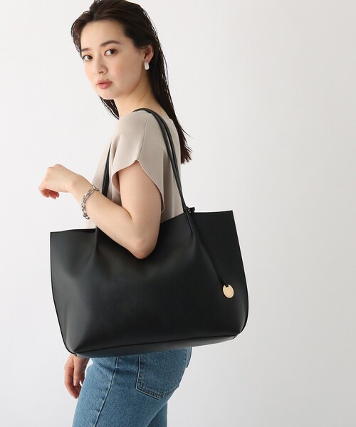程よく柔らかく軽量な素材使用したフェイクレザートート。 【デザイン】 使い勝手のよいA4サイズのフェイクレザートートバッグ。 シンプルなカラーリングで合わせるスタイリングを選びません。 取り外し可能なコイン型バッグチャームがアクセントになっています。 A4サイズもしっかり横に収納していただけ、オンオフ兼用で使えるアイテム。 シンプルなトートバッグはカジュアルからきれいめまで幅広くコーディネートにマッチ。 ワントーンコーディネートにすればこなれ感が出たおしゃれなスタイリングに。 季節問わず使えるアイテムです。 【素材】 非常に軽量なフェイクレザーを1枚革風に仕立てた素材を使用しております。 カラーにより裏側がメタリックになっており、アクセントになっています。 ※ポケット数:内側×1 【A4ファイル収納可】 店舗へのお問い合わせ商品番号:C71-14071 ●製品寸法: 00:高さ28cm 幅(上部)43cm 幅(下部)35cm マチ11cm 持ち手上がり25.5cm 付属チャーム全長22cm モチーフH3cm モチーフW3cm 備考:重量:約380g(サンプル重量)