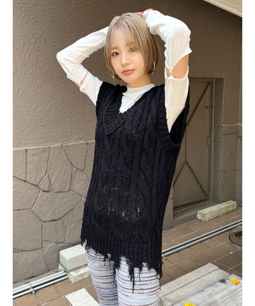 見た目にもインパクトがあり一枚でおしゃれに見えるニット!スラブの糸で編み上げたオーバーサイズのニットベストです。大き目のケーブル柄で裾をクラッシュしているのでカジュアルに着こませます♪◆ポイント・今季一押しクラッシュデザインでエッジをプラス・ブラックやホワイトはもちろん、ブルーやキャメルのミックス地カラーが一押し・オーバーサイズでらふに着こなしが可能◆生地・サイズ感スラブ糸でボコボコとした表面感があるのが特徴。ブルー・キャメルはミックス地になっているのでより立体化のある編地になります。165cm以上の方でもヒップが隠れるくらいの丈感なのでスカートを合わせワンピース風に着こませます◆おすすめスタイリング一枚で着て頂くのはもちろん、インナーをレイヤードして着こなして頂くのがおすすめです。カットアウトトップスやアームウォーマーをプラスすると一気にトレンドライクな着こなしが完成します♪※着用画像はフラッシュの加減で実際の製品と色味等が異なる場合がございますので、生地のズームアップ画像をご確認ください。※ご利用の端末画面の設定により実際の商品と色味が異なる場合がございます。【トクする便利機能】♡商品のお気に入り登録再入荷時、ラスト1点の時、セール開始時にお知らせします。♡ブランドのお気に入り登録新商品や再入荷、セール情報など、ブランドのお得な情報を受け取ることができます。是非ご活用ください!