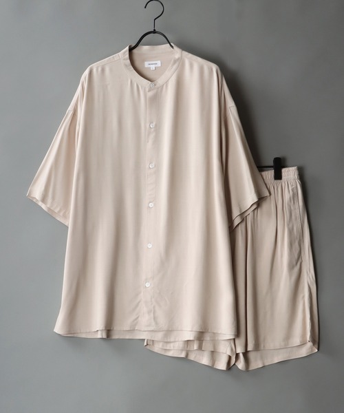 レーヨンバンドカラー シャツ&ハーフパンツ セットアップ ゆるめなのにすっきりした袖丈、身丈にこだわったバンドカラーシャツとシルエットが美しいハーフパンツの2点セット。 気軽にセットアップスタイルを楽しめます。 ▼ファブリック 夏に最適な軽く滑らかなレーヨン素材。 軽めの着心地でアウター、インナー両方で着こなしいただけます。 ▼デザイン 細部までこだわった存在感のあるバンドカラーシャツ。 着丈や袖、美しく見える襟の形までこだわった品のあるデザインです。 ハーフパンツは単体でも上品に着こなせるように足が美しく見えるシルエットに拘りました。 ウエストはゴムが入り着用感も抜群です。 ▼シルエット 今年らしい少しゆったりとしたシルエットでリラックスして着ることができます。 ユニセックスに使えるシルエットで女性にもオススメです。 ▼コーディネイト バルカラーコート・ドルマンジャケット・スイングトップと共に、今季注目のセットアップ。 インナーにはシンプルに無地T、タンクトップやTパーカーを合わせてもハマります。 トップスのみをスキニーに合わせた韓国風アレンジもおすすめ。 レザースニーカーや革靴を合わせれば、上品な大人の雰囲気に。 小物との相性も非常に良く、レザーバックやバケットハットとのコーディネートが定番です。 ▼お買い物をお楽しみいただく為に ★ 購入ボタン横のハートマークをクリック! 完売カラーの再入荷通知や、ラスト1点の通知、セールの通知も受け取ることができます。 (商品のお気に入り登録) ★ ショップのトップページにあるハートマーク 「お気に入りショップに追加」をクリック! 新商品や再入荷等、いち早くブランドのお得な情報を受け取ることができます。 (ブランドのお気に入り登録) 【SITRY/シトリー】 TOKYO発。最先端で時代のニーズに合ったファッションを追求。都会的で洗練されたモードスタイルとストリートスタイルを融合し、 誰の手にも届きやすい必要不可欠なアイテムをプチプライスで提案します。