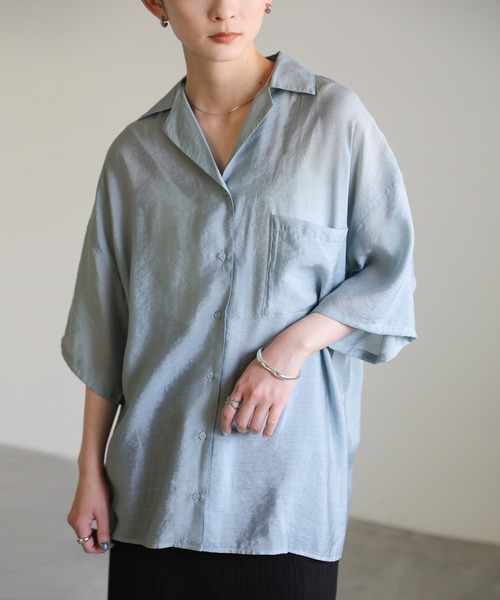 -point- & -styling-さっと着るだけでこなれて見える開襟シャツの登場です。ゆとりのあるボックスシルエットでアウトで着てもバランスよく決まるように仕上げた一枚です。程よいシアー感がカジュアルかつヘルシーな抜け感を演出し、パンツスタイルでも女性らしい印象に。さらりと落ち感のある柔らかい質感です。ワイドパンツに華奢なサンダルを合わせて大人カジュアルにまとめたり、Iラインのスカートを合わせるシックなスタイリングもおすすめです。オープンカラールーズシルエットシャツ----------------------------素材 レーヨン76%・ナイロン24%----------------------------伸縮性 なし裏地 なし----------------------------※2023年再販分より、ベージュの色味を変更しております。----------------------------※モニター・環境等により実際の商品と多少色味が異なって表示される場合がございます。 予めご了承をお願いいたします。=======================■袋梱包の為、染料による特有の匂いが抜けきれず、匂いがする場合がございますが不良品にはあたりません。 上記注意点での返品、交換はお断りします。ご了承の上お買い求めくださいませ。■本製品は生産過程におきまして色味、サイズ感等若干の誤差が出る場合がございます。予めご了承くださいませ。=======================【お買いものをお楽しみいただく為に!】▼商品のお気に入り登録完売カラーの再入荷通知や、ラスト1点の通知、セールの通知も受け取ることができます。▼ブランドのお気に入り登録新商品や再入荷など、いち早くブランドのお得な情報を受け取ることができます!