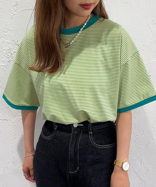 【大人気カラーボーダーTが半袖になって登場◎】 カジュアル派さん必見! 大人気だったカラーボーダーTが半袖になって帰ってきました! ボーダーの配色が可愛く目を引くデザイン◎ リンガーTは今季らしくトレンディなスタイリングで着用していただけます。 細めのボーダーで子供っぽくならず 大人な雰囲気で着用できるのも嬉しいポイント◎ 夏に映える1枚での着用はもちろん、 キャミワンピースやサロペット、ジレなどのインナーとしての着用もおすすめです。 --------------------------------------- 生地の厚さ:普通 透け感:なし(ピンク、ピンク系その他 若干あり) 伸縮性:若干あり --------------------------------------- ※ご覧のモニター環境や撮影環境により実際の商品と多少色味が異なって見える場合がございます。 ご理解の程よろしくお願いいたします。 【お買い物をよりお楽しみいただく為に♪】 ▼商品のお気に入り登録をおすすめします ♡をクリック! 完売カラーの再入荷や、ラスト1点の通知、 セールの際の通知を受ける事ができます。 ブランドのお気に入り登録も ご一緒にお願い致します。