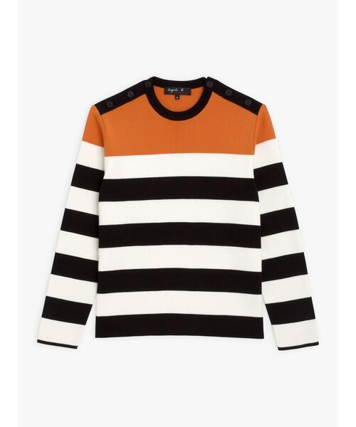 トップのアクセントカラーが周囲の視線をキャッチするニットプルオーバー。ボーダー柄をワイドにすることでインパクトのあるルックスに。ショルダーラインにはボタンをあしらい、ディテールのこだわりをみせています。 ※商品にアテンションカードや品質表示タグが付属している場合は、必ずご確認の上、お取扱いください。 (##) 1(M):肩幅40、バスト96、袖丈63.5、ゆき丈-、着丈-、身丈68.5 2(L):肩幅42、バスト102、袖丈66、ゆき丈-、着丈-、身丈68.5