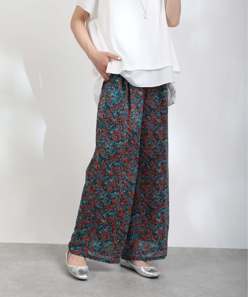 コーデの主役にピッタリなフラワー柄のイージーパンツ。透け感のある涼し気で軽やかなフラワー柄の生地を使用。ワイドシルエットにウエストゴム仕様で楽チンな着心地の一枚です。フロントはスッキリとしているので、トップスインしてもキレイで様になります。シンプルベーシックなTシャツ、ノースリーブ合わせはもちろん、シアーシャツ合わせやワンピースとのレイヤードなどトレンドライクな合わせにも◎※裏地あり※裏地長さ足首辺りまで※撮影場所や明るさにより実際の商品と色味が若干異なる場合がございます。 ☆商品のお気に入り♡登録を押せば”再入荷通知”や”残りわずか通知” 値下げのお知らせが届きます!お気に入りのブランド登録していただければ新商品入荷のお知らせも届きますので是非登録してみて下さい