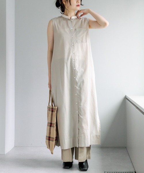 ピュアルセシン 2022 SS collection【classical fragrant】 ◇これからの季節に活躍するノースリワンピース◇ ●商品のお気に入り登録 クーポンやタイムセール、再入荷通知やラスト1点などお得な情報を受け取ることができます。 ご登録をお忘れなく◎ ●デザイン Tシャツに重ねたり、ノースリーブでヘルシーな着こなしなど 着回し力抜群のノースリーブワンピース。 リラックス感のあるデザインながら、バンドカラーがきちんと感も演出し こなれ感のある着こなしが楽しめます。 サイドスリットが入っているので足さばきが良く、歩きやすいのも嬉しいポイントです。 ●カラー展開 ストライプ柄のイエロー系/ブルー系と 無地のベージュ系/スミクロの4色展開。 ●素材 つるりと滑らかな肌触りで軽やかな着心地です。 ●スタイリング Tシャツに重ねたり、前開きのデザインなので羽織としても活躍し、スタイリングの幅が広がります。 1枚で着こなすのはもちろん、パンツをレイヤードするのもおすすめです。 =============================== 透け感:ややあり 裏地:なし 伸縮性:なし 光沢感:なし 生地の厚さ:薄手 【スタッフコメント】 年齢:20代半ば/身長:154cm/普段着用サイズ:Mサイズ サイズ感:ゆとりがありラフな着心地。くるぶし程の丈で、1枚はもちろんパンツ合わせもおすすめです。 素材感:つるりと滑らかな肌触りで夏でも涼しく着られそうです。 =============================== ※撮影場所やお使いのモニター環境により若干お色味が異なる場合がございます。特にロケの撮影では明るく見える傾向にございます。 ※予約商品はサンプルで撮影をしております。若干の仕様が変更になる場合がございますので予めご了承の上ご注文くださいますようお願いいたします 。