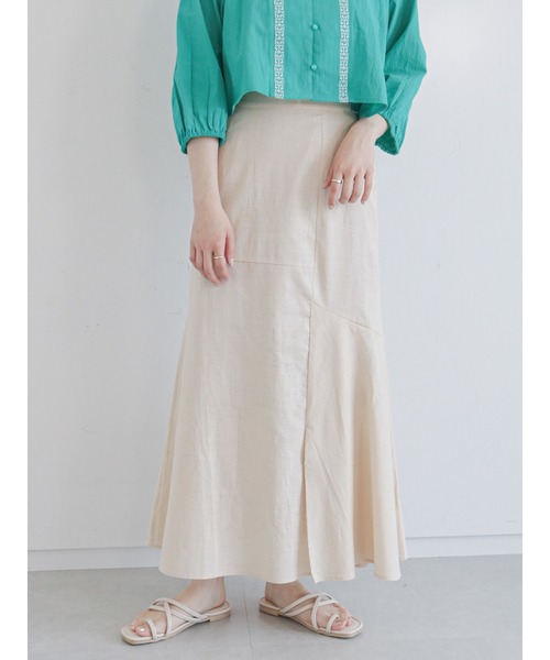 アシンメトリーな切替デザインがポイントになったマーメイドスカート。 裾広がりの優美なシルエットが、エレガントな大人の女性らしさを演出。裾スリットで足元がちらっとのぞくヘルシーなヌケ感もポイントです。 同素材を使用したジャケットとのセットアップが可能です。 ※商品画像は、撮影環境やお客様のご利用のPC・スマートフォンのモニター環境などにより実物と色味に差異がある場合がございます。 【その他採寸】 F ウエスト:[後ゴム仕様] 62cm