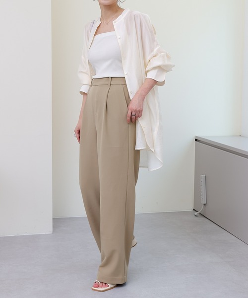 定番シリーズイージーケアパンツがさらにアップデート!【楽ちん綺麗が叶う1タックワイドパンツ】美シルエットと穿き心地の良さの両方を兼ね備えた、こだわりのワイドパンツ。タックが入っているのでワイドながらもきれいなシルエット。後ろゴムで着用時のストレスなく、前側はトップスインした際にスッキリと綺麗な見え感になるようにしています。シワになりにくく、ストレッチ性があり履きやすい1枚です。・タックを施したスきれいなシルエット・綺麗めも、カジュアルも合わせやすいワイドパンツ・シワになりにくくお取り扱いのしやすい素材同素材シリーズ・CWA1021602A0008 ストレッチイージーケアーパンツ(2タック)・CWA1021602A0009 ストレッチイージーケアーパンツ(フレア)・CWA1021602A0010 ストレッチイージーケアーパンツ(1タックワイド)【コーディネート】春夏シーズンにおすすめで幅広いスタイリングで活躍してくれるアイテム。ウエストがきれいに見えるデザインなのでインスタイルがおすすめ◎トップスインにし、トレンドのTシャツやシアーシャツ、ブラウスなどの相性抜群。ロンT、トレーナー/スウェット、パーカー、などと合わせカジュアルスタイルもお楽しみいただけます。足元にグルカサンダルやトングサンダルを合わせることで、スッキリとした印象に◎デイリーカジュアルから、オフィスカジュアルまで幅広いシーンで活躍できるアイテムです。■素材・洗濯について素材: ポリエステル95%, ポリウレタン5%洗濯: 洗濯機洗い可(弱)※着用、お取り扱いの際は、商品についている品質表示とアテンションタグを必ずご確認下さい。※商品タグに記載されている商品名がWEBでの表記名と異なる場合があります。※画像の商品はサンプルです。実際の商品と仕様、加工、サイズが若干異なる場合がございます。 ※照明の関係により、実際よりもやや明るく見える場合がございます。またパソコンなどの環境により、若干製品と画像のカラーが異なる場合もございます。予めご了承くださいませ。 【お気に入り登録】してお得な情報をCHECK!!・「商品のお気に入り登録」で再入荷通知や、ラストの通知、セール通知も受け取ることができます。・「ブランドのお気に入り登録」で新商品や再入荷など、お得な情報を受け取ることができます。