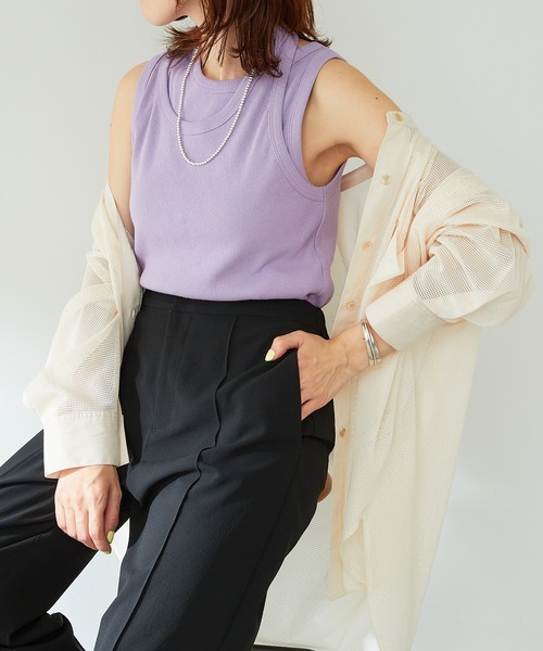 簡単に決まる!オトナのこなれレイヤード ●2枚を重ねたようなデザインのタンクトップ。 ●伸縮性のあるコットン素材が優しく肌に馴染みます。 ●首元はもちろん、裾部分もレイヤード風デザインがポイントに。 ●ブラックはシンプルな着回しに、パープルはコーディネートの差し色としても活躍します。 【MATERIAL】 綿 100% ・透け感: ・裏地: ・伸縮性: ・光沢感: ・洗濯:ご自宅にて洗濯可 【気になる商品は「お気に入り」登録を】 ハートマークをクリックし、お好きなカラーを選んでお気に入りに登録すると 入荷情報や残り1点の通知、完売カラーの再入荷、セール情報などを受け取ることができます。 ※撮影場所やお使いのモニター環境により若干お色味が異なる場合がございます。 特にロケの撮影では明るく見える傾向にございます。詳細撮影画像で色味をお確かめくださいます様お願いいたします。 ※サンプルで撮影をしております。若干の仕様が変更になる場合がございますので予めご了承の上ご注文くださいますようお願いいたします。 ※サンプルでの採寸のためあくまで目安となります。予めご了承ください。