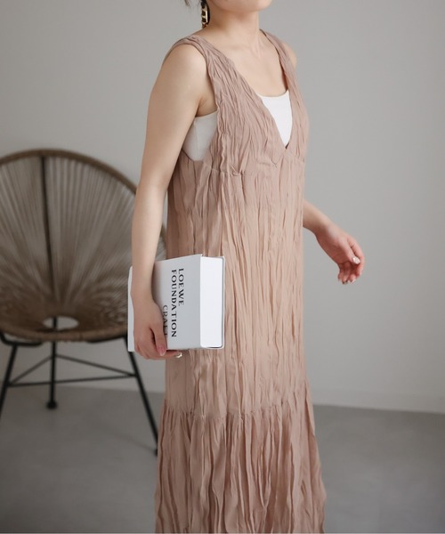 ・・2022 new item・・・ インナー次第で表情を変えられる優秀ワンピース◎ クリンクル加工が施されたディープVワンピース♪ 深めのVネックデザインはレイヤーで更にオシャレに! 春夏はTシャツやタンクなど軽やかに 秋冬はロングTシャツやタイトニットがおすすめです インナー付なので透け感も安心◎ デニムやレギンスと合わせてカジュアルな着こなしも楽しめます。 シワも目立ちにくい為、お手入れで悩む心配がないのも嬉しいポイントです◎ クリンクル生地はコーディネートに動きをプラスしてくれるためお洒落UP! ※クリンクル素材のため着丈身幅が記載サイズとの多少差がある可能性がございます。 (スタッフ着用) ■身長145cm Mサイズ着用 マキシ丈ですがフラットシューズでも着用可能 バックリボンで肩幅はサイズ調整できました。 ■身長155cm Mサイズ着用 足首が出るくらいの着丈で丁度良かったです。 ロング丈がすきな方はLサイズでも良いかと思います。 ■身長167cm Lサイズ着用 Mサイズはひざと足首のちょうど真ん中くらいだったため長さが欲しく Lサイズにしました。足首が出るくらいの丈で丁度よかったです。 ※クリンクル素材のため着丈身幅が記載サイズとの多少差がある可能性がございます。 ※商品画像は撮影時の光や角度により、実物の色味と異なって見える場合がございます。 ※生産時期により色・素材・サイズ感など多少異なる場合がございます。予めご了承ください。 ※他のキャンペーンにより、期間中に価格が変動する場合があります ※セールは予告なく終了させていただく場合もあります。 ※ご注文いただいた予約商品のお届け時期の確認は、注文履歴ページより行えます。