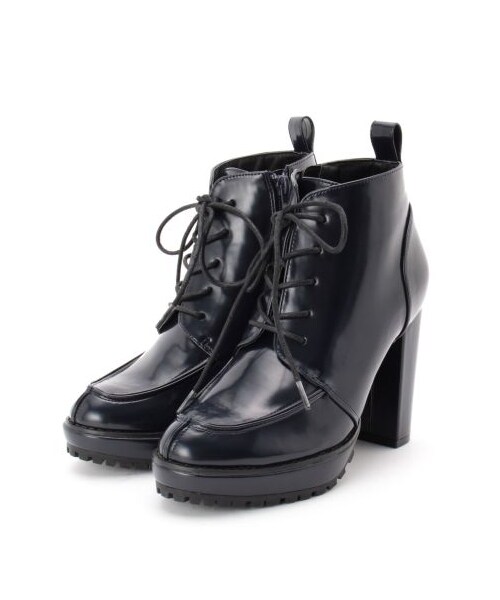 太いヒールで存在感バツグンなレースアップブーツ。ボトム選びに困らないショート丈もポイントです◎艶感のあるフェイクレザーとハラコ調の2タイプでクールなスタイリングにもマッチ!店舗へのお問い合わせ商品番号:143-05266