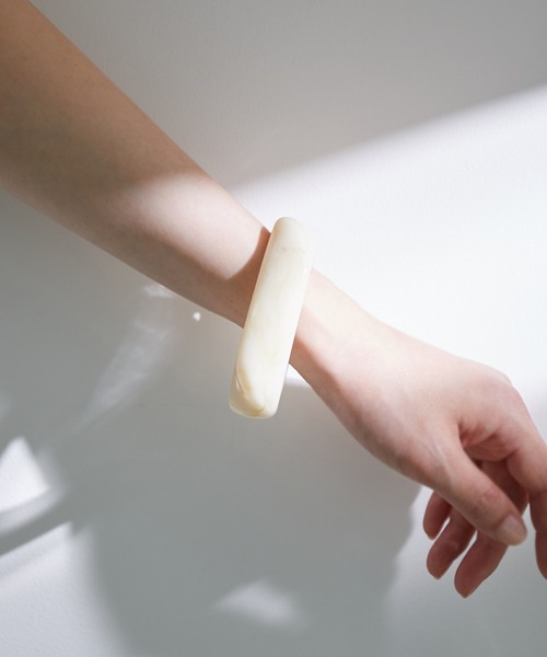 シンプルなスタイリングにぴったりなアイテム!【デザイン・シルエット】存在感のあるワイドなバングル。着けるだけで春夏らしい涼しげな印象をプラスしてくれます。Tシャツやワンピースなどに合わせてアクセントとして使えます。【カラー】ニュアンスマーブル柄のベージュとクリアの2色展開。※画像の商品はサンプルです。 実際の商品と仕様、加工、サイズが若干異なる場合がございます。