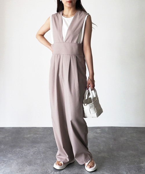 【Riberry ハイウエストサロペット】 ハイウエストで足長効果抜群!リラックスムードのサロペット ■Styling ハイウエストでワイドシルエットのサロペット。 ノースリーブTシャツで大人っぽく、 プリントTシャツでカジュアルに、 ブラウスをいれてガーリーに、 インナー次第でどんなコーデとも相性のよくなる万能な1枚です! ■Detail 全体的にゆったりとしたシルエットでリラックスモード。 ハイウエストなのでリラックスなデザインながらも足長効果があり、 スタイルアップ効果も抜群です◎ ■Material 麻混でサラッと生地感とレーヨン混なので柔らかい着心地です。 ※この素材は摩擦(特に湿った状態での摩擦)や、 汗や雨などでぬれた時は他の衣料や下着・バッグなどに色が移る場合がありますので、ご注意下さい。 ※詳しいお手入れ方法は商品タグをご参照ください。 裏地:あり 透け感:なし 伸縮性:なし 生地の厚さ:普通~やや薄い オールインワン/サロペット/デイリー/カジュアル/大人カジュアル/きれいめ/きれいめカジュアル/ シンプル/ハイウエスト/上品/着回し/楽ちん/ラフ/ラフスタイル/夏 【Information】 ◆《お気に入り登録》がオススメ◆ ・「商品のお気に入り登録」で再入荷通知や、ラストの通知、セール通知も受け取ることが出来ます。 ・「ブランドのお気に入り登録」で新商品や再入荷など、お得な情報を受け取ることが出来ます ※撮影時のライティング、ご覧になっているモニター・PC環境により、実際の商品と色味が異なって見える場合がございます。予めご了承をお願い致します ※ご注文いただいた予約商品のお届け時期の確認は、注文履歴ページより行えます。 ※他のキャンペーンにより、期間中に価格が変動する場合があります。※セールは予告なく終了させていただく場合もあります。