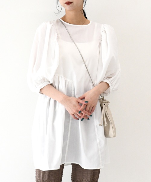 こなれ感たっぷりのシルエットが魅力のチュニックブラウス今季らしいボリュームスリーブがポイントの1枚。袖口はギャザーゴム仕様にする事で、プッシュアップも可能です。袖丈を変えて、こなれ感のあるスタイリングを楽しんでいただけます。安心感のあるチュニック丈がヒップラインをさりげなくカバーしてくれるのも嬉しいポイント◎★おススメPOINT★ ・デニムを合わせてフェミニン×カジュアルのコーディネートがオススメです。・ボトムは細身のパンツでもワイドパンツでも今年らしく着て頂けます。・サロペを合わせたキレイめなスタイリングも◎▼モデル着用写真は撮影環境により、多少実際のカラーと異なる場合がございます。 ☆NOFALLsango ZOZOTOWNお買い物ガイド☆お買い物をよりお楽しみいただく為に ▼商品のお気に入り登録 💛をクリック!完売カラーの再入荷通知・お気に入りアイテムの値下げ・ラスト1点などの通知をお知らせいたします。 ▼ブランドのお気に入り登録 💛をクリック!新商品や再入荷などお得な情報を受け取ることができます。