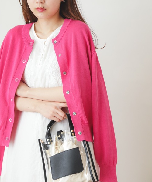 着回し抜群万能カーディガン 〇程よいサイズ感 〇夏に使いやすいサマーカーデ 〇カラーの効いた色展開 styling 羽織としてもトップスとしても着まわせる万能アイテムです。さまざまなボトムスと合わせて着ていただけます。 ※商品画像は、光の当たり具合やパソコンなどの閲覧環境により、実際の色味と異なって見える場合がございます。予めご了承ください。 ※商品の色味の目安は、商品単体の画像をご参照ください。 ▼お気に入り登録のおすすめ▼ お気に入り登録商品は、マイページにて現在の価格情報や在庫状況の確認が可能です。 お買い物リストの管理に是非ご利用下さい。 ----------------------------- 透け感:なし 伸縮性:あり 裏地:なし 光沢:なし ポケット:なし -----------------------------