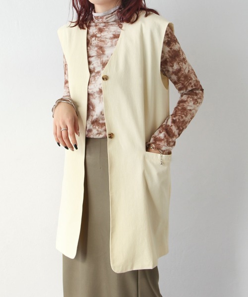 夏にピッタリのドライな風合いが大人可愛いリネンライクジレ! ■Point ・清涼感ある風合い ・羽織るだけでこなれ感を演出◎ ■Detail この一枚を普段のコーデに取り入れるだけでこなれ感がグッと高まります! ボタンは留める際に内側に隠れるようになっており、大人っぽくスタイリッシュな印象にも◎ アームホールはレイヤードしやすいよう大きめに調整しており、ボリュームスリーブのアイテムなどとのレイヤードがしやすいのもポイントです。 ■Fabric ドライな肌ざわりでシャリ感のある生地表情のリネンライク生地を採用。 涼しげな風合いがこれからの季節にピッタリ! ■Coordinate トップスはタンクトップやTシャツでシンプルに決めるのが◎ ボトムスはベーシックなデニムパンツや同テイストの【az22153c】リネンライクタックパンツと合わせるのもオススメです。 Ladies Model 162cm サイズFREE着用 生地がしっかりしていてサイズ感が良かったです。 ボタンを留めて着ると違った雰囲気を楽しめます。 Ladies Model 165cm サイズFREE着用 夏っぽい素材感で、薄すぎず厚すぎず着やすいです。 閉めた時、ボタンが見えないので大人っぽくスタイリッシュな印象です。 Ladies Model 168cm サイズFREE着用 羽織るだけで雰囲気がでてオシャレ見えします。 【お買い物をお楽しみいただく為に】 ▼商品のお気に入り登録 完売カラーの再入荷通知や、ラスト1点の通知、セールの通知も受け取ることができます。 ▼ブランドのお気に入り登録 新商品や再入荷等、いち早くブランドのお得な情報を受け取ることができます。