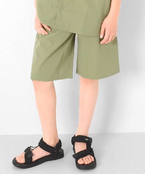 ゆったりとしたサイズ感で、リラックスして着用いただけるハーフパンツです。さらっとしたTR素材が着やすさ抜群!さらにウエストゴムで着脱楽々。お手持ちのボーダーTなどともよく合います。デイリーにもお出かけにも大活躍してくれるオススメアイテムです♪【ポケット】フロントポケット×2、ヒップポケット×1【モデル】身長146cm、体重35kg 着用サイズ:150cm