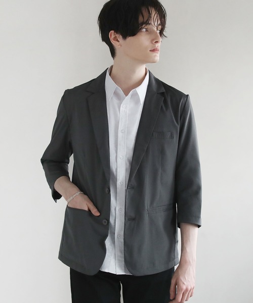 大人気テーラードジャケットから「接触冷感」の七分袖ジャケットが登場。-アイテム説明-上品さ×高機能素材のテーラードジャケット。ひんやりと涼しい肌触りに仕上げた接触冷感素材の生地で、蒸し返すような真夏の暑さからくるストレスを軽減してくれます。脱いだ際に持ち運びしやすいのもポイント。ブラック、杢グレー、ベージュ、ネイビーとコーディネートに迷わないカラー展開となっております。-素材-ひんやりと涼しい肌触りで暑い日にも爽やかな着心地の接触冷感素材。この生地は吸湿性を持つため、内部の蒸れを吸収してくれます。また通気性にも優れており、外からの新鮮な空気を取り入れてくれるので、暑さからのストレスを軽減し、クールで快適な着心地をつくります。-コーディネート-シンプルなカットソーやタンクトップ、半袖シャツの上からサッと羽織るだけでもこなれた雰囲気を生み出してくれるアイテム。ベーシックデザインなため、カジュアルからキレイめまで馴染みやすく、抜け感のある落ち着いたコーディネートが完成します。--------------------------------------------【お手入れ方法】ご自宅での手洗いが可能です。タンブラー乾燥機の使用はお控えください。--------------------------------------------▼商品詳細透け感:なし裏地:なし光沢:あり生地の厚さ:薄い伸縮性:あり※商品画像は、光の当たり具合やパソコンなどの閲覧環境により、実際の色味と異なって見える場合がございます。予めご了承ください。【お買い物をお楽しみいただく為に】▼商品のお気に入り登録完売カラーの再入荷通知や、ラスト1点の通知、セールの通知も受けることができます。▼ブランドのお気に入り登録新商品や再入荷等、いち早くブランドのお得な情報を受け取ることがきます。
