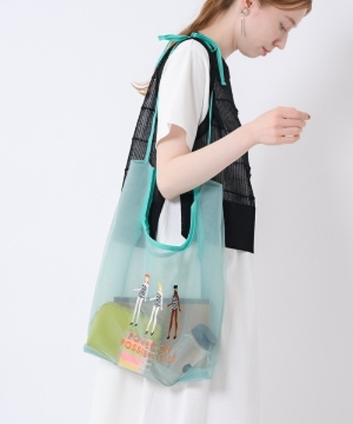 「Barbie(バービー)」デザインのチュールバッグが入荷! 透け感の可愛さとクールなイラストの刺繍の3色展開です。 ハンドルはショルダーとマルシェバッグの2WAY仕様。 チュールの程良い光沢がコーディネートを華やかにしてくれます。 【accommode】 自分に、家族や友人に、贈りたくなるちょっと特別なGIFT。 ラフでPOPでユニークなバッグと雑貨のブランド“ACCOMMODE”