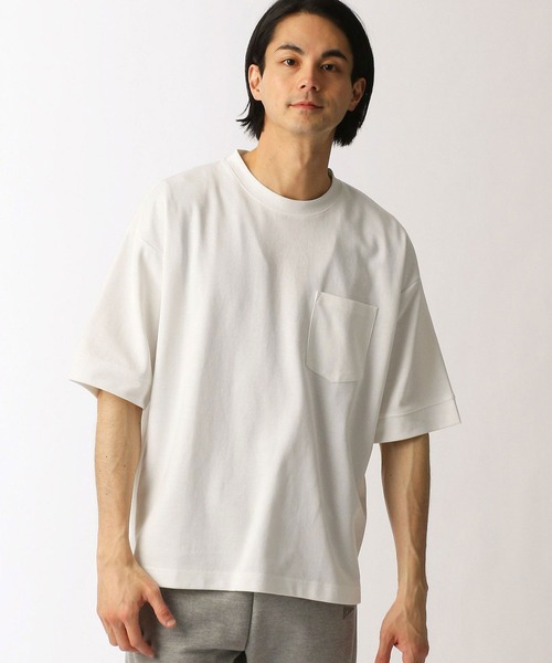 裾に大きくプリントしたブランドロゴがアクセントの速乾性のある素材を使ったTシャツ 表地をコットンで、裏地をポリエステルしているので、すばやく水分を吸水して汗をかいても速乾性のある肌触りの良い素材を使用しています。後ろ裾に大きくGrandPARKのブランドロゴをプリントしてアクセントにしています。同系色のプリントにする事でさりげないアクセントになっているのがポイントです。着丈を少し長めにしているのでアウターやTシャツなど重ね着した際に裾から少しロゴが見えるのがアクセントになります。サイズ感は程よいサイズ感で生地も透けにくいので1枚での着用も問題ないです。 ※ご家庭でのお洗濯可能な商品です。詳細、取り扱い方法は商品に付いている品質表示、アテンションタグをを御確認下さい。 *****************裏地:なし伸縮性:あり光沢感:なし生地の厚さ:普通透け:なし***************** <スタッフ着用コメント>本社 Hさん身長:178cm/体重:66kg/体型:普通/普段サイズ:48(L)/着用サイズ:48(L)サイズ感:少しゆとりがあって丁度良い素材感:程よい厚みがあって肌触りはすごく良い着心地:素材感も良く、汗をかいてもすぐ乾くので快適。