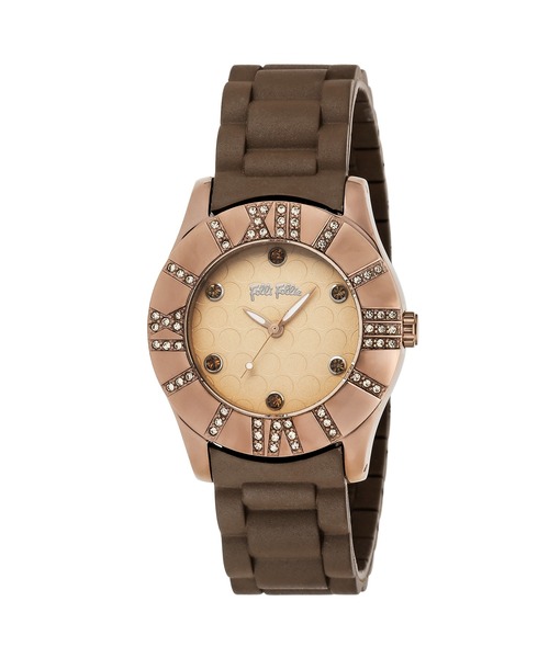 FolliFollie/フォリフォリジュエリーやウォッチ、アクセサリーなどを展開するギリシャ発のブランド、フォリフォリ(FOLLIFOLLIE)。1982年、夫婦で設立されたファッションブランドです。フォリフォリはシルバーとムラノガラスを使ったユニークで洗練されたジュエリーで知られます。幅広い価格帯、ニーズに応える「フルファッションコンセプト」をテーマにしており、ファッションに敏感な女性への期待に応えてきました94年にはレディースウォッチコレクションをスタート。クラシックウォッチ、クロノグラフ、ジュエリー、セラミックというタイプの異なる4つのラインを展開しており、時計でも幅広いニーズに応えられるような商品ラインナップとなっています。Spec文字盤カラー:ブラウン防水機能:日常生活防水駆動方式:クォーツガラス素材:ミネラルガラスサイズ:ケース縦:35mm×横:35㎜×厚さ:10mm重さ64.5g保証:保証年数2年(自然故障保証)付属品:箱/取扱説明書/保証書モニター電池使用のため、受け取り時に電池が切れている可能性がございます。保証期間内かつ初回の電池切れに対しては、1回目のみ無償交換をさせていただきます。保証期間が経過している場合は、有償での対応になりますので、予めご了承ください。---------------------------------------------------------お気に入り登録のオススメ▼商品のお気に入り登録再入荷、残り1点、セールなどの通知を受け取ることができます。▼ブランドのお気に入り登録新商品や再入荷など、いち早くブランドの情報を受け取ることができます。---------------------------------------------------------