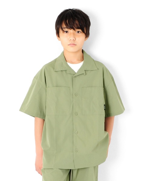 肩を落としゆったりとしたサイズ感が今っぽい半袖シャツ。さらっと羽織るだけでオシャレにきまります◎今っぽいサイズ感とニュアンスカラーで、シンプルになりがちな夏コーデのアクセントになるアイテム♪インナーには綺麗なカラーのTシャツを合わせるのが、今年っぽいコーデです☆普段使いのカジュアルなコーデにしたいときは、ワイドシルエットのハーフパンツを合わせるのがオススメです。前を閉じての着用、前を開けてインナーを見せたスタイル、どちらもオシャレにきまります★【ポケット】フロントポケット×2【モデル】身長146cm、体重35kg 着用サイズ:150cm