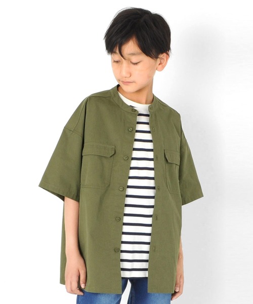 GLAZOSでは珍しいスタンドカラーがポイントの半袖シャツです。 胸に2個ついている大き目フラップポケットがおしゃれ感満載。 オーバーサイズなデザインなので、GLAZOSのドロップショルダーTの上からもサッと羽織れます♪ 糸を通すところが猫の目のように凹んでいる猫目ボタンを使用。 この凹みによって糸切れが起こりにくくなるのもさりげなくうれしいポイント。 素材アソート・ベルトデザインハーフパンツとセットアップ可能です☆ 【モデル】 身長146cm、体重33kg 着用サイズ:150cm(カーキ) 身長149cm、体重37kg 着用サイズ:150cm(カーキ) 身長147cm、体重34kg 着用サイズ:150cm(ブルー)