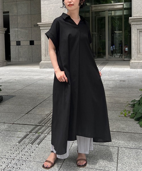 さらっと軽い着心地 フレンチスリーブで華奢見え ベーシックに着たいスキッパーシャツワンピ ■point ・襟元をすっきりキレイ魅せしてくれるスキッパーデザインです。 ・後ろ丈が長いシルエットが綺麗なワンピースです。 ・ゆったりフレンチスリーブがこなれ感を演出します。 ・さらっとした肌触り。夏にぴったりの着心地です。 ・バックシルエットはタック入り。後姿まで綺麗に見せてくれるデザイン。 ・Aラインに広がりのあるゆったりシルエット ・嬉しいサイドポケット付き ■coordinate 1枚でコーディネートが完成! デニムやワイドパンツを合わせたレイヤードスタイルでも雰囲気たっぷりなコーディネートになります。 シンプルなデザインなので、サンダルやカゴバッグなど合わせる小物によって雰囲気がガラッと変わります♩ -------------------------------------------------- 透け感:なし 裏地:なし 伸縮性:なし 生地の厚さ:薄手 ポケット:あり 季節:春.夏.秋 洗濯方法:手洗い可 -------------------------------------------------- ※商品画像は着用イメージです。 光や角度により、実物と色味が異なる場合がございます。また表示のサイズ感も実物とは若干異なる場合もございますので、ご了承ください。 ※着用、お取り扱いの際は、商品についている品質表示とアテンションタグを必ずご確認ください。 -------------------------------------------------- ♡をクリックでお得な情報をお知らせいたします。 <商品お気に入り登録> お気に入りアイテムのお値下げ・再入荷・在庫ラスト1点など通知を受けることができます。 <ブランドお気に入り登録> Chez toiの新商品・再入荷・SALE・クーポン配布などお得な情報を受けることができます。 -------------------------------------------------- リラックススタイル/ストレスフリー/スモックワンピース/ベーシック/デイリー/体型カバー/大人カジュアル/ママコーデ/ お出かけスタイル/細見え/抜け感/キレイめ/ロング丈/低身長/華奢見え/シンプル/マタニティ/コットンリネン/スキッパーシャツ/ワンピース/着回し/着映え/スキッパーシャツワンピ/フレンチスリーブ/ロングワンピ/デートコーデ/食事会/オケージョン/ゆったりシルエット
