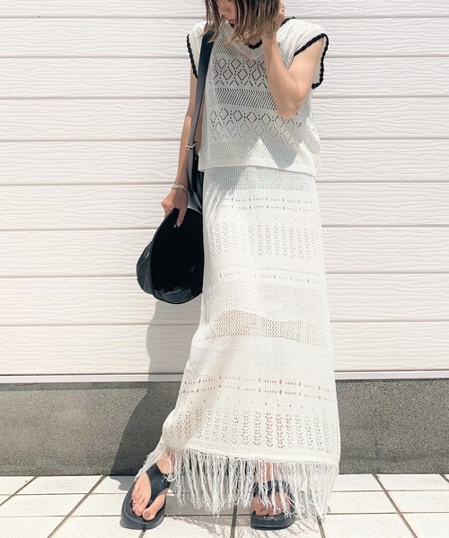 【WEB限定商品・セットアップ商品】クロシェ編みのノースリーブトップスとスカートのセットアップです。セットアップで着るのはもちろんですが、別々にも着られるので様々なコーディネートを楽しめます。トップスの襟ぐりや袖口はバイカラーにして、メリハリのあるようにアクセントを付けました。※スカートには裏地が付いています《インフォメーション》◆商品のお気に入り登録完売していても再入荷時に再入荷通知を受け取ることができますので、是非ご登録ください。◆ブランドのお気に入り登録新商品や再入荷などの情報を受け取ることができますので、是非ご登録ください。
