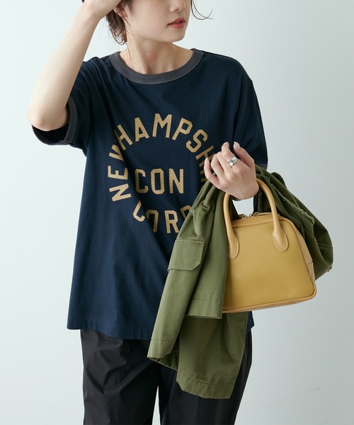 ピュアルセシン 2022 SS collection【classical fragrant】 ◇ヴィンテージライクなカレッジロゴがほどよく抜け感を演出◇ ●商品のお気に入り登録 クーポンやタイムセール、再入荷通知やラスト1点などお得な情報を受け取ることができます。 ご登録をお忘れなく◎ ●デザイン 程よいカジュアルさが気取らない大人の抜け感を出してくれるカレッジロゴTシャツ。 ゆとりを持たせたビッグシルエットで着心地はもちろん、体型カバーも叶えます。 インでもアウトでも使いやすい着丈なので、ボトムスを選ばず着回しに重宝する1枚です。 ●カラー展開 ナチュラル/グレージュ/ネイビーの着回しやすい3色展開。 ●素材 伸縮性が高く、滑らかな肌触りのコットン素材。 アウターを変えれば春から秋口まで着用できます。 ●スタイリング お手持ちのベーシックアイテムからストライプシャツ、ジレベストのインナー使いなど 定番のスタイリングからトレンドライクな着こなしまで幅広く楽しめます。 =============================== 透け感:ナチュラルのみややあり 裏地:なし 伸縮性:あり 光沢感:なし 生地の厚さ:やや薄手 【スタッフコメント】 年齢:20代半ば/身長:154cm/普段着用サイズ:Mサイズ サイズ感:オーバーなシルエットでラフな着心地。タックインもアウトもしやすいです。 素材感:伸縮性が高く滑らかな肌触りです。 =============================== ※ナチュラルは黒い点のようなカスを残した、自然な風合いの生地感となります。 ※撮影場所やお使いのモニター環境により若干お色味が異なる場合がございます。特にロケの撮影では明るく見える傾向にございます。 ※予約商品はサンプルで撮影をしております。若干の仕様が変更になる場合がございますので予めご了承の上ご注文くださいますようお願いいたします 。