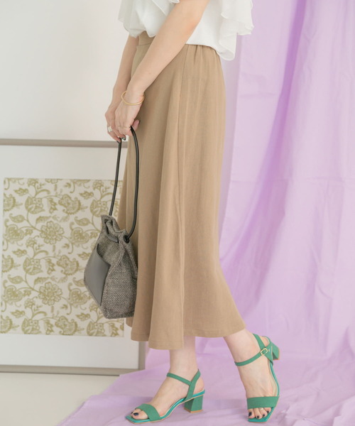 ベーシックなシルエットのコットンリネンスカートが登場。どんなトップスでも合わせやすい万能なデザインのスカートは使い勝手抜群。ナチュラルな中にも女性らしさがあり、長すぎない丈感で清潔感のある1着に仕上がりました。生地は柔らかく、ウエストは後ろがゴムなので楽に履いて頂けます。 ----------------------------- 《スタッフ着用コメント》 [スタッフA] 年齢 : 20代後半, 身長 : 152cm, 体型 : 普通/骨格ストレート 普段の着用サイズ : トップスS~L/ボトムスS 【着用カラー/サイズ】MOC/FREE 【サイズ感】身長152cmでくるぶしが見える着丈になるので低身長の私でも着用しやすいスカートでした◎ウエストは、後ろがゴムなので締め付けが無く着用できます! 【素材感・着心地】コットンリネン素材なので、汗をかいてもべたつかないようなさらっとした穿き心地です! ----------------------------- ※この商品はデザイン性や素材感を重視し、柔らかい風合いの生地を使用しています。強い力がかかると、滑脱(縫い目が滑って開いたり、縫いしろが抜ける)したり目寄れ(織糸が滑って片寄り、織り目が開く)することがあります。着脱や洗濯の際は、引っ張ったり引っ掛けないようご注意ください。 ※商品画像は、光の当たり具合やパソコンなどの閲覧環境により、実際の色味と異なって見える場合がございます。予めご了承ください。 ※商品の色味の目安は、商品単体の画像をご参照ください。 ▼お気に入り登録のおすすめ▼ お気に入り登録商品は、マイページにて現在の価格情報や在庫状況の確認が可能です。 お買い物リストの管理に是非ご利用下さい。 ----------------------------- 透け感:なし 伸縮性:なし 裏地:なし 光沢:なし ポケット:なし -----------------------------