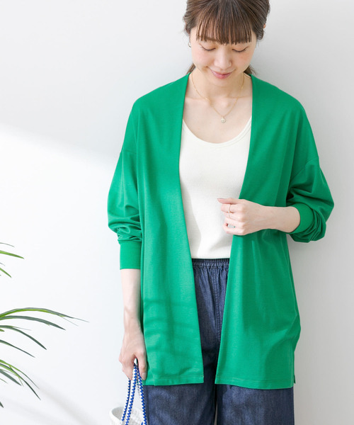 【機能性に優れたカットカーディガン】冷房対策やUV対策にぴったりなカットカーディガン。軽やかなカノコ素材を使用しているので、汗をかいても肌離れもよく、快適に着用いただけます。ヒップがしっかり隠れるミディ丈でパンツにもスカートにも合わせやすいデザインです。※この商品は、素材の特徴を生かして作られています。そのため、繊維にムラがあったり、フシが混入している場合があります。※商品画像は、光の当たり具合やパソコンなどの閲覧環境により、実際の色味と異なって見える場合がございます。予めご了承ください。※商品の色味の目安は、商品単体の画像をご参照ください。素材感透け感 : ややあり(カーキのみ)伸縮性 : ややあり裏地 : なし光沢 : ややありポケット : あり