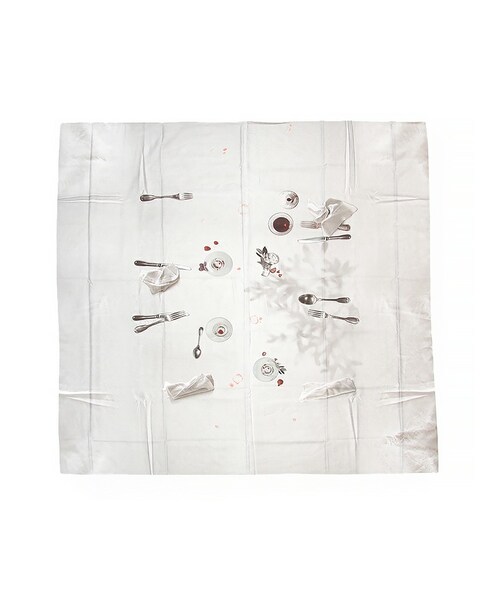 フランスブランドDaycollectionの転写のテーブルクロス。リアルなカトラリーや食器やナフキンなどが食事をしているようなプリントになっています。このテーブルクロスを敷くことで食卓を素敵に楽しませてくれそうですね。