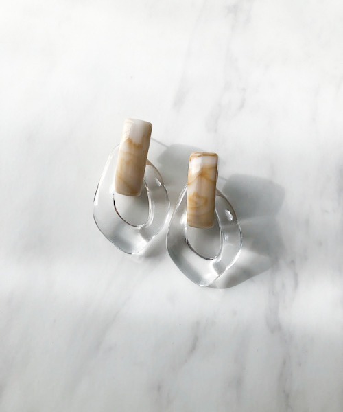 スタイリングに映える、アクリルピアス ドロップ型の変形フォルムが美しいアクリルピアスシリーズ。 軽やかな透明感とカラーリングをスタイリングにプラスすることでシーズンムードが高まる一品。 Tシャツやカットソー、ワンピースなど、シンプルスタイリングのアクセントに最適なアイテムです。 *撮影はサンプルにて行なっております。 商品の特性上、アクリルの色や模様の仕上がりには個体差がございます。 また、バー部分とドロップ部分は差し込みタイプの仕様となっております。 動かし方により外れることがございますが再度はめ込んでいただけます。 予めご了承くださいますようお願いいたします。 T I M E L E S S & T H R E E タイムレスなスタンダードさ。 そして、「今」を愉しむマインド。 このふたつの価値観と感性を、 一粒のエッセンスとなるアイテムを通して提案します。