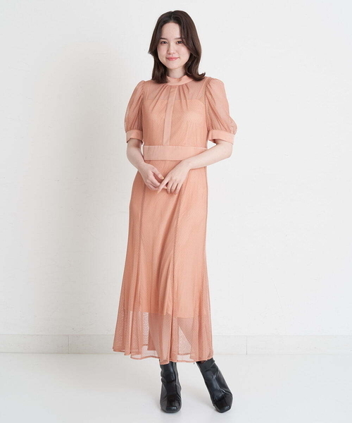 ◆普段使いからきっちりとした場面にも!汎用性◎◆ ■デザイン 身頃はチュール素材で、透け感のあるデザインに。 襟、裾口、ウエストは無地のドッキングデザイン。 マーメイドシルエットで、スタイルアップ効果も◎ ウエストの切替が、腰位置を高く見せてくれます。 長すぎない丈感が、合わせる靴を選ばずご着用いただけます。 キャミソールワンピ―スが付いているので 安心して着用できるのも嬉しいポイント。 ■着用感 腕まわり、裾の透け感がこなれ感バッチリ。 マーメイドシルエットなので、スタイルをより良く見せてくれます。 軽い着心地なので、ストレスなくご着用いただけます。 …………………… 透け感:一部あり 厚さ:薄手 伸縮性:なし ……………………