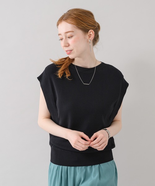 両脇にガゼットを仕込んだ、大人のサマーニット。○POINT・ガゼットにより脇にゆとりがあり、フレンチスリーブと相まって肩回りが楽ちんなニットです。・伸びの良いニットは動き易く、通気性と吸水性の良いレーヨンは夏でも涼しくお召いただけます。○STYLING・コンパクトなサイジングでスカートもパンツも合わせ易いです。・デニムスカートと合わせれば、普段とは一味違ったカジュアルスタイルに。裏地:なし光沢:なし伸縮性:あり透け感:なし生地の厚さ:普通ポケット:なし