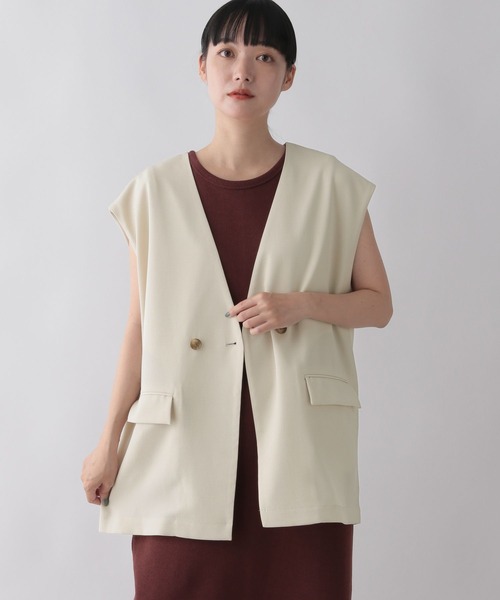 ■素材特性■ 麻の様なナチュラル感とドライな風合いが特徴的なリネンライクファブリックになります。 ポリエステルの一部にリサイクル原料を使用したサステナブル素材です。 ざっくりとした織りで涼し気でカジュアルな印象の素材です。 吸水速乾性もあり、シワにもなりにくくお手入れ簡単な多機能素材です。 ■デザイン■ ボトムスとお揃いの素材で作成したベスト。 程よく身幅、裾幅もゆったりとさせています。 ノースリーブでも下に半袖Tシャツなどと合わせやすいです。 前明きの幅を狭めにして、前を開けても広がりすぎずすっきりと着ていただけます。 今シーズンはスカートとの合わせが新鮮でお勧めになります。 ■スタイリング例■ ベスト×ワンピースのスタイリングで大人っぽく合わせて頂いたり、 パンツスタイルにもオススメです!