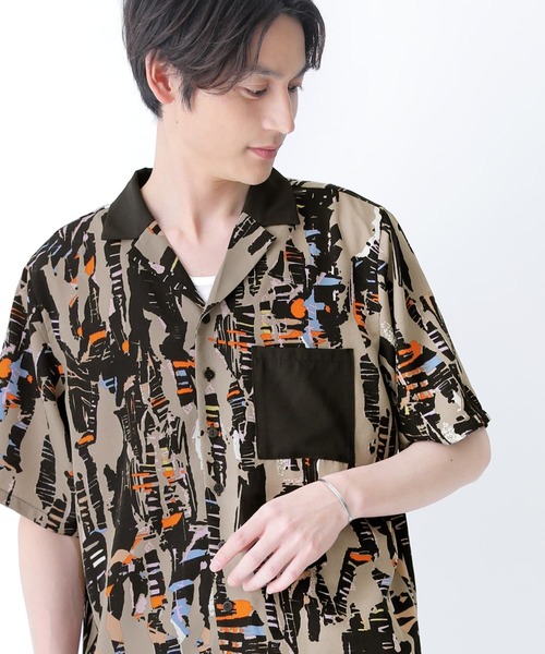 『目を惹くお洒落な存在感。』 モードな雰囲気を放つグラフィカル柄×無地の配色切り替えがお洒落の決め手。 個性あふれるこなれ感を演出する、開襟シャツ。 顔周りをスッキリ見せる開襟デザインが大人の抜け感を演出。ゆるっと着られて風の通りも良いラフなシルエットで、一枚で着ても羽織としてもこなれた着こなしを実現します。 さらりと肌触りの良い滑らかな素材感で、シワになりにくく落ち感が美しい一着です。 同生地のレディースバージョンとお揃いで着ると、大切な人とのリンクコーデもお楽しみいただけます。さらに、2サイズ展開からお好みのシルエットを選べるのも嬉しいポイント。 今、好きな物、興味あることを自由な発想で表現できる≪ n'OrLABEL ≫。 「実用性と機能性、そして遊び感覚」、多面性を楽しめるピュアでモードなデザインライン。 大人の遊びゴコロを刺激する≪n'OrLABEL≫配色グラフィカルプリント開襟シャツです。