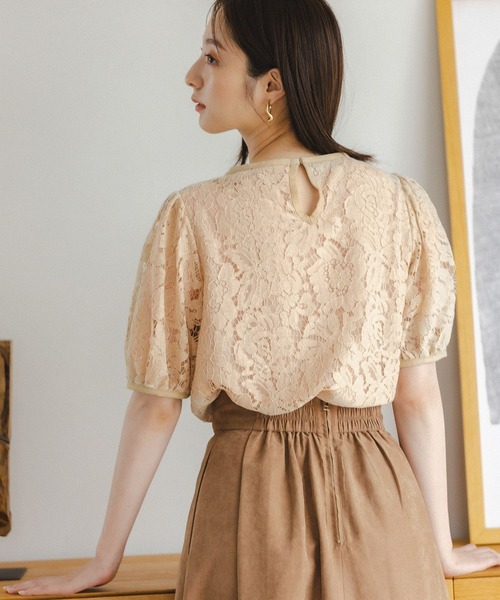 一点投入で映えるレースブラウス。 上品なネックまわりと、裾のスカラップデザインが華やかな一枚。 普段のオフィスはもちろん、レストランやセレモニー、ちょっとしたパーティーシーンにも似合います。 裏地には肌触りのいいジョーゼットを使用しているので、真夏はさらりと一枚で完成! 秋はジャケットやカーディガンをプラスして。 【素材】 コードレース:肌なじみの良い花柄レース ストレッチなし 透け感あり 裏地あり ファスナーなし ーーーーーーーーーーーーーーーーーーーーーーー ▼ 商品のお気に入り登録 ▼ 完売カラーの再入荷通知や、ラスト1点の通知、 セールの通知も受け取ることができます。 ▼ ブランドのお気に入り登録 ▼ 新商品や再入荷など、 ブランドのお得な情報をいち早くお知らせ! ぜひご登録ください! ※屋内外の光や照明の当たり具合で、実際の商品の色味とカラー別画像の色味に違いが発生する場合がございます。 色味はスタジオ撮影の詳細画像にてご確認ください。 ※生地の寄り画像が最も実物に近い色味となります。